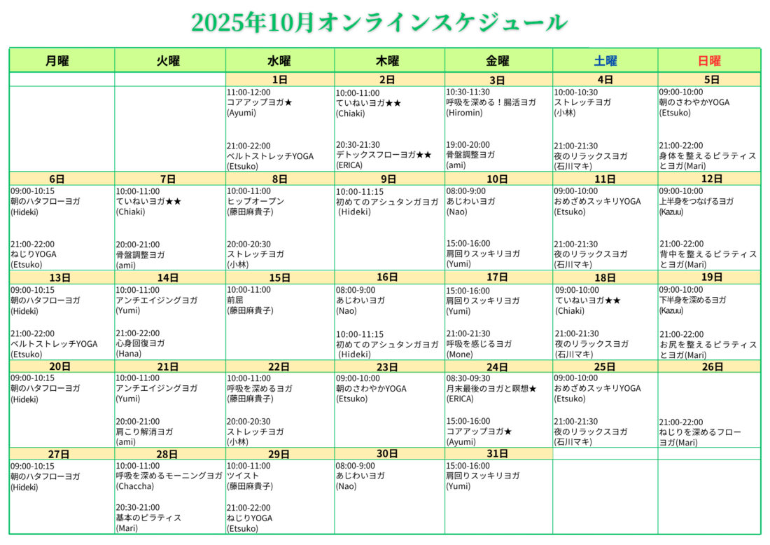 PDFファイルはこちらからオンラインスケジュール 2025年10月ご確認いただけます。